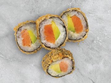 Salmón, queso crema, aguacate, tempurizado en panko. 10uds.